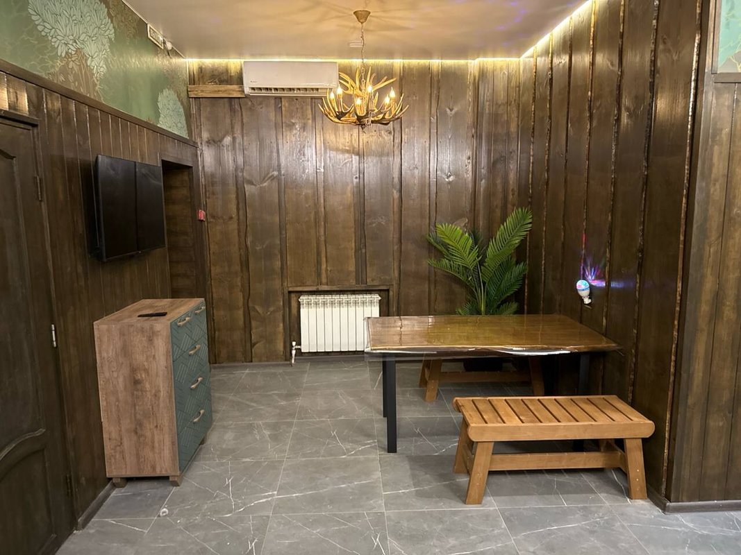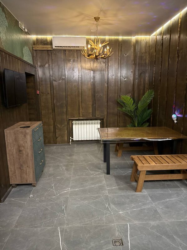 Не хочется в бассейн? Не проблема! Вместо этого можно провести время в нашей комнате отдыха. Мы постарались создать здесь комфортный, стильный интерьер из максимально натуральных, экологичных материалов, выбрать мебель, которая будет одновременно удобной и красивой. Надеемся, что вы его оцените! Также у нас работает бар, где вы можете заказать блюда русской кухни, а если нужно, прийти и с собственной едой - мы не против! Только не забывайте, что плотная трапеза непосредственно перед посещением парной - это не самая хорошая идея, согласно мнению докторов. А вот после парной она совсем не повредит!