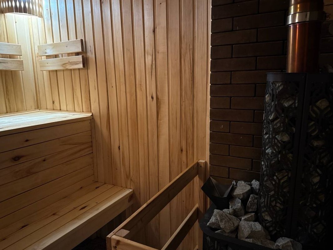 У нас есть два вида парных, из которых вы сможете выбрать наиболее подходящий: традиционная русская баня на дровах и финская сауна. Хотя со стороны они могут быть похожи, в них принципиально разный микроклимат: в финской парной воздух при максимально низкой влажности разогревается до температуры 100 градусов, в русской же главное - перегретый, сухой пар, который возникает благодаря камням, лежащим в закрытой печи. Потому и ощущения от них такие разные!